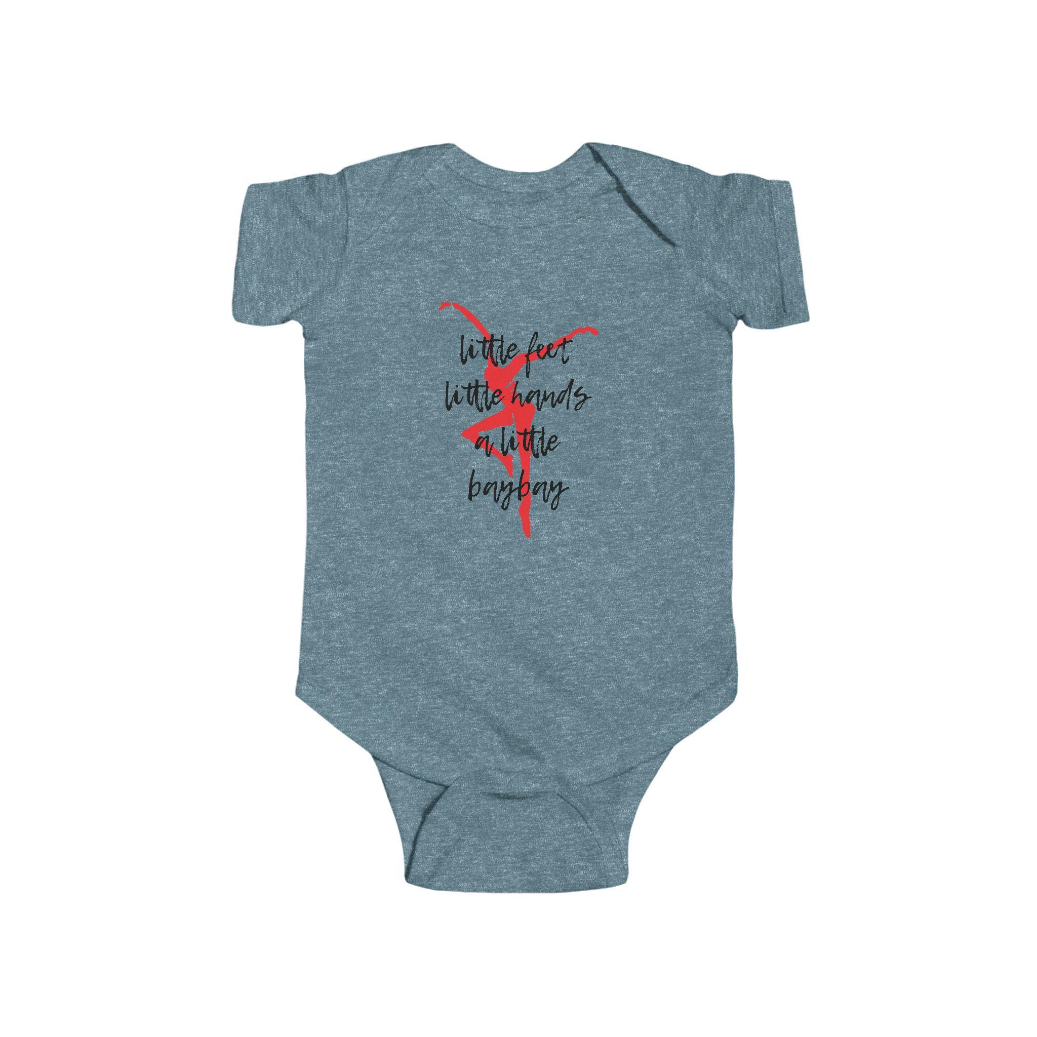Baby clothing needs to be both durable and soft. With the infant fine jersey bodysuit, youths get just that. The fabric is 100% cotton for solid colors. For heather colors, polyester is included. There are seams along the sides of this product. All bindings are made with ribbed knitting for improved durability. There are plastic snaps at the cross closure for easy changing access.
